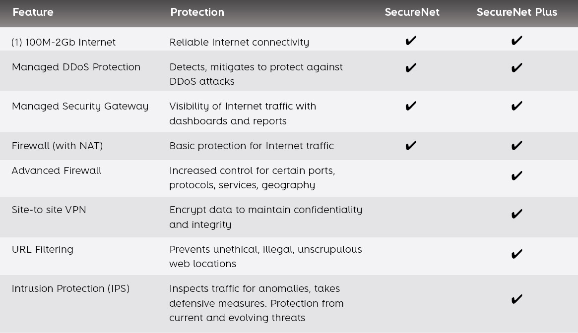 Altice Business SecureNet provides connectivity plus a choice of 2 all-in-one security packages designed to match your level of risk and protect your business.